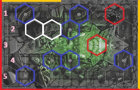 - U žlutě označené krátké strany je pouze 1 startovní hex a 2 lethal hexy. Velmi výhodné při obrané hře na dlouhém bojišti